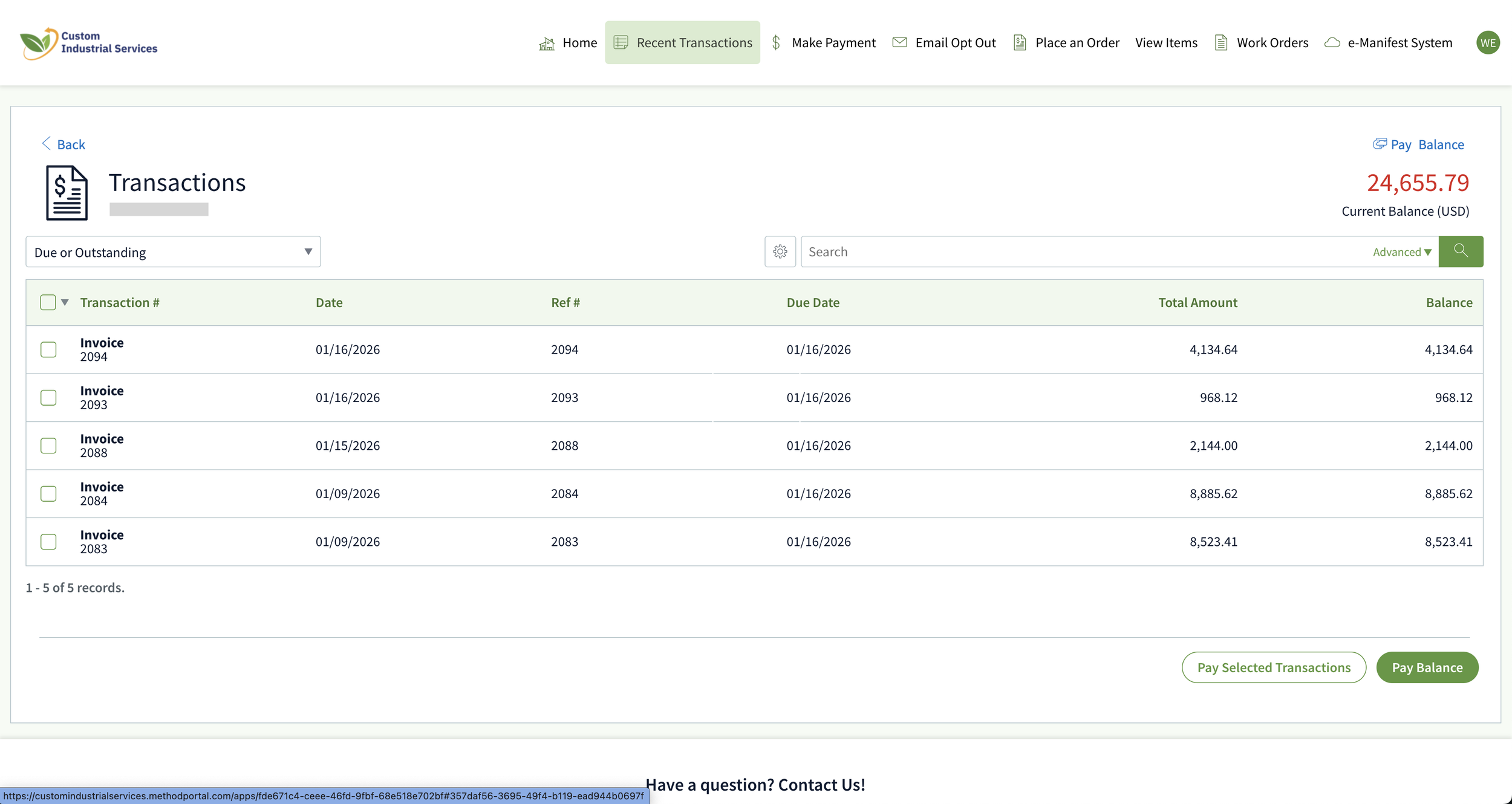 The Work Orders tab provides a complete history of every pickup we’ve performed. It’s the ultimate proof of service, categorized and ready for review whenever you need to prove a pickup happened. When manifests are finalized by the accepting facility, they will be attached to these items for your download.